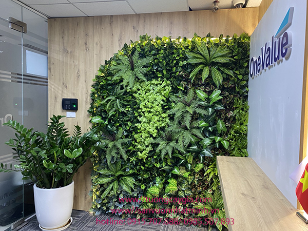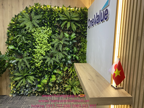Nhật Minh đem đến sản phẩm vách tường cây nhân tạo tại văn phòng công ty One Value số 19 Duy Tân với mẫu cây cao cấp, cắt tỉa cầu kì. Quý khách có thể xem các hình ảnh dưới đây để biết được chất lượng của vách tường cây văn phòng sang đẹp, bền, giá siêu tốt